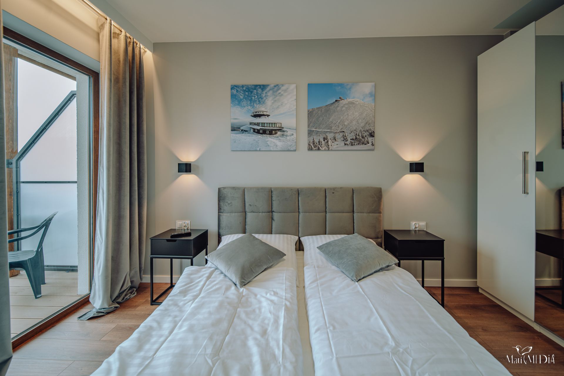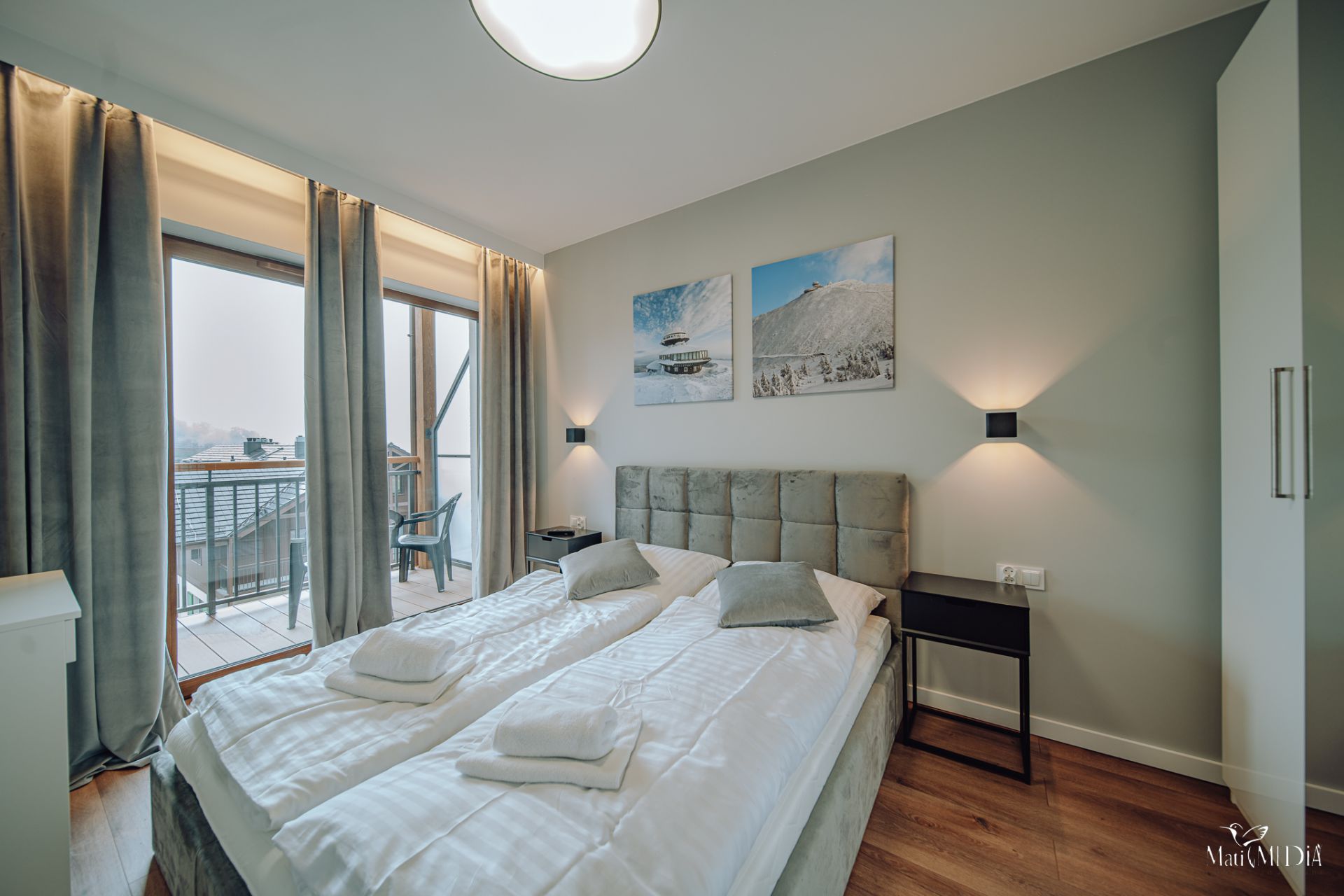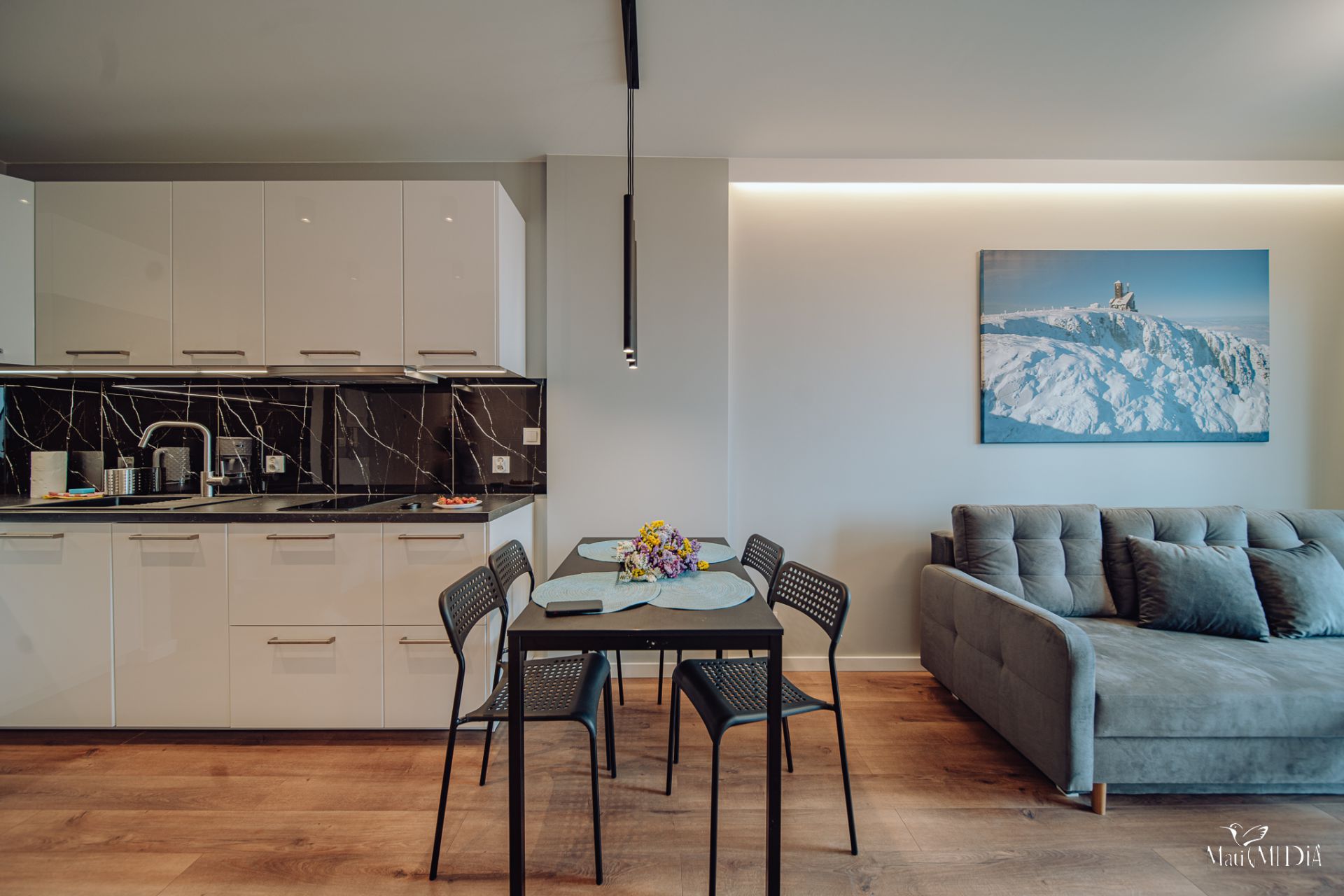 Apartamenty Karpatia zlokalizowane w przepięknej okolicy z bliskim dostępem do wyciągu narciarskiego .Przepiękny widok z tarasów na kotlinę oraz Karpacz . Apartaent posiada niezależną sypialnię z łóżkiem małżeńskim oraz salon z aneksem kuchennym, wyposażonym we wszytko co potrzebne . Apartament zapewnia bezpłatny parking, dostęp do WI-FI, a w okresie zimowym dostęp do sauny .