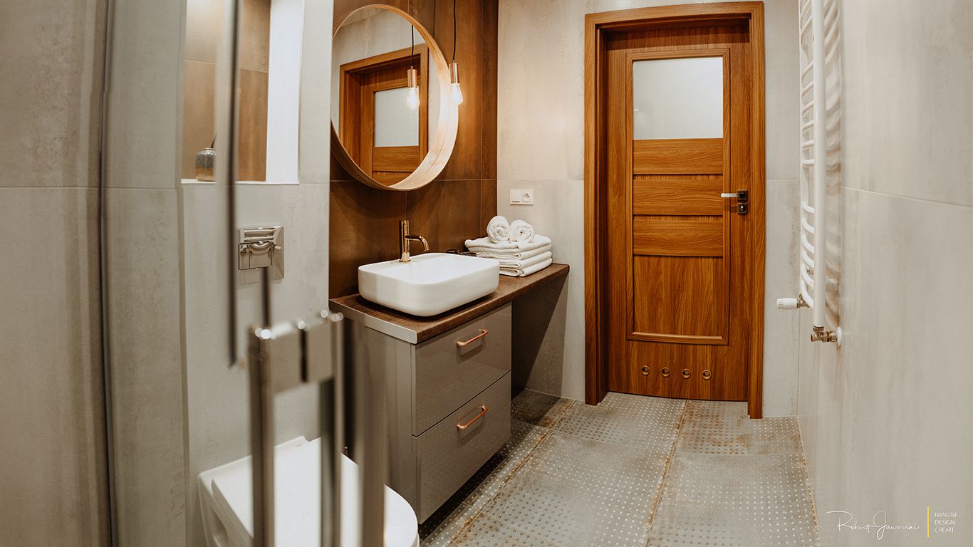 Łazienka : toaleta, prysznic, suszarka do włosów,