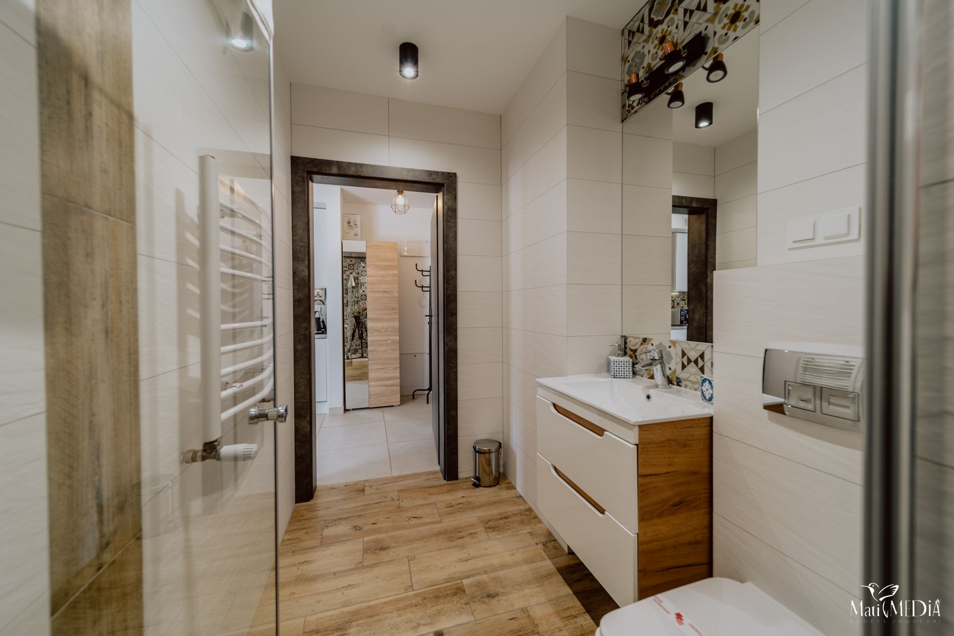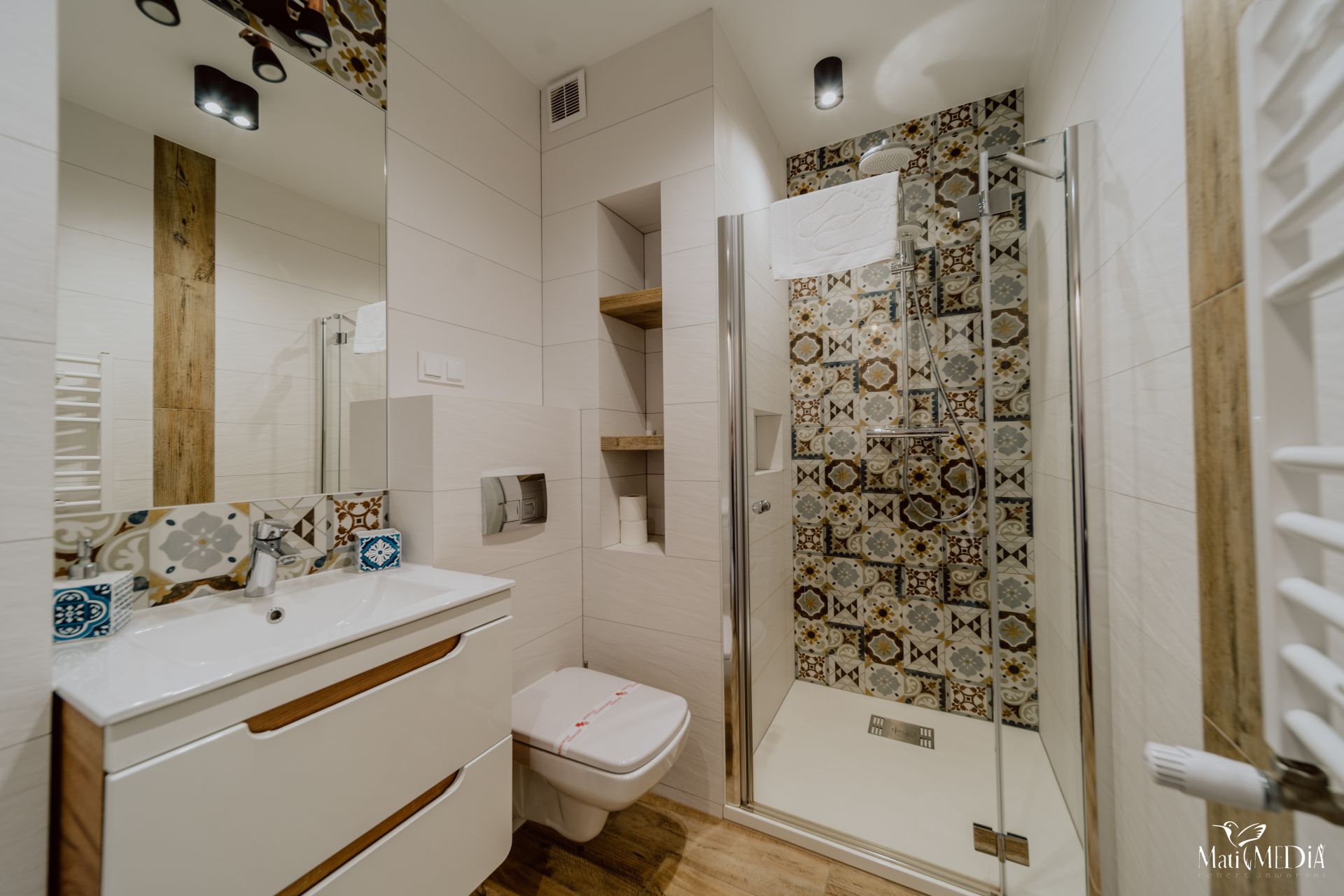 Łazienka : toaleta, prysznic, suszarka do włosów,