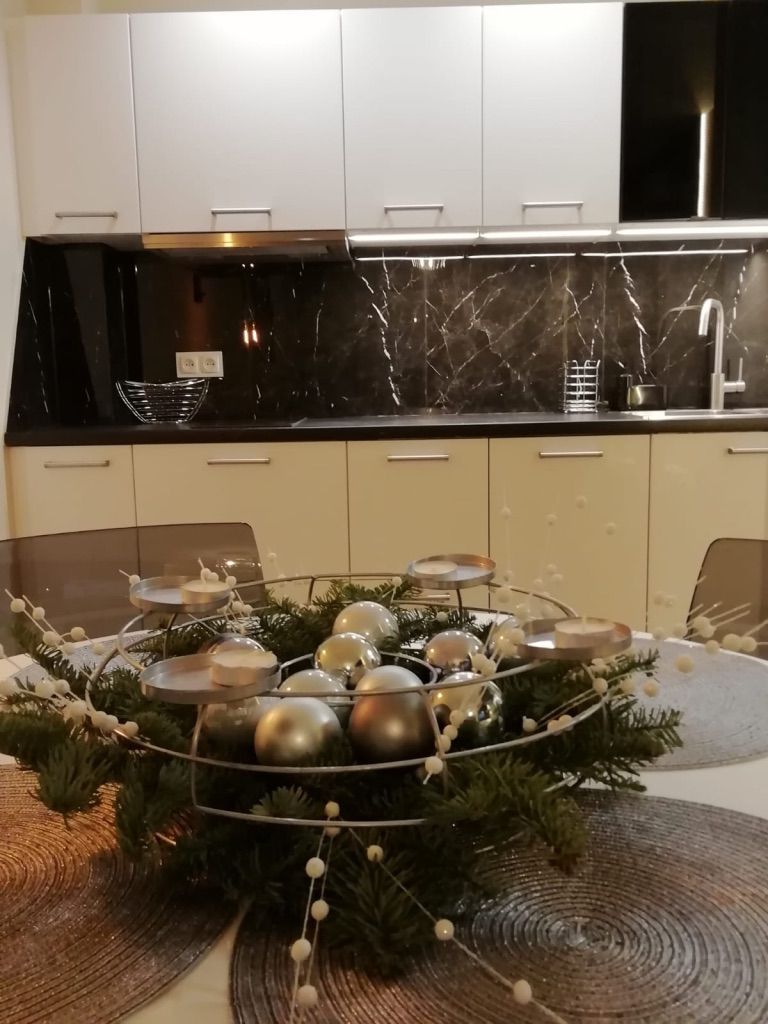 Aneks kuchenny wyposażony : płyta indukcyjna, piekarnik, zmywarka, lodówka, czajnik elektryczny,  naczynia, garnki, sztućce .