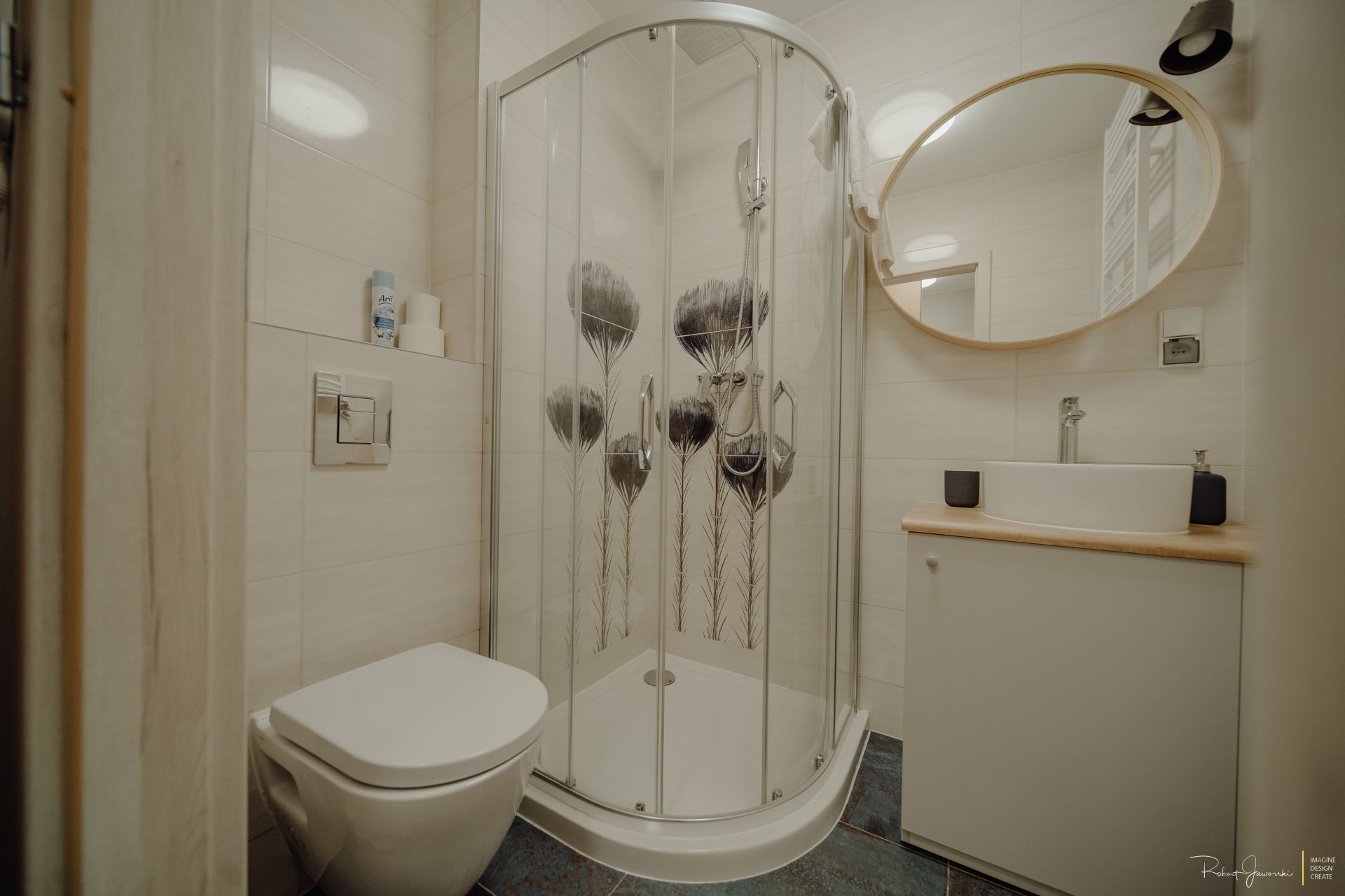 Łazienka : toaleta, prysznic, suszarka do włosów,