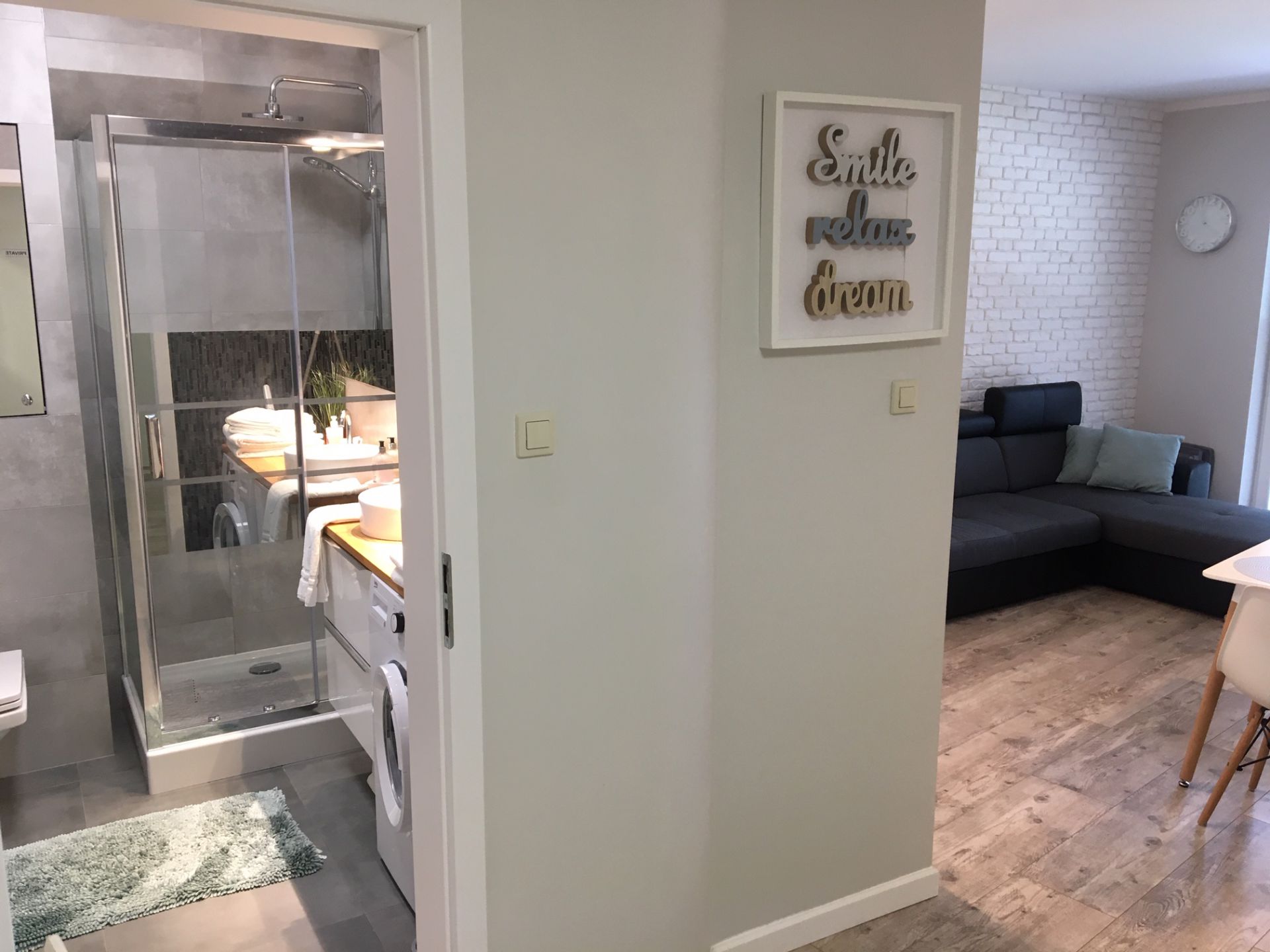 Łazienka : toaleta, prysznic, suszarka do włosów,