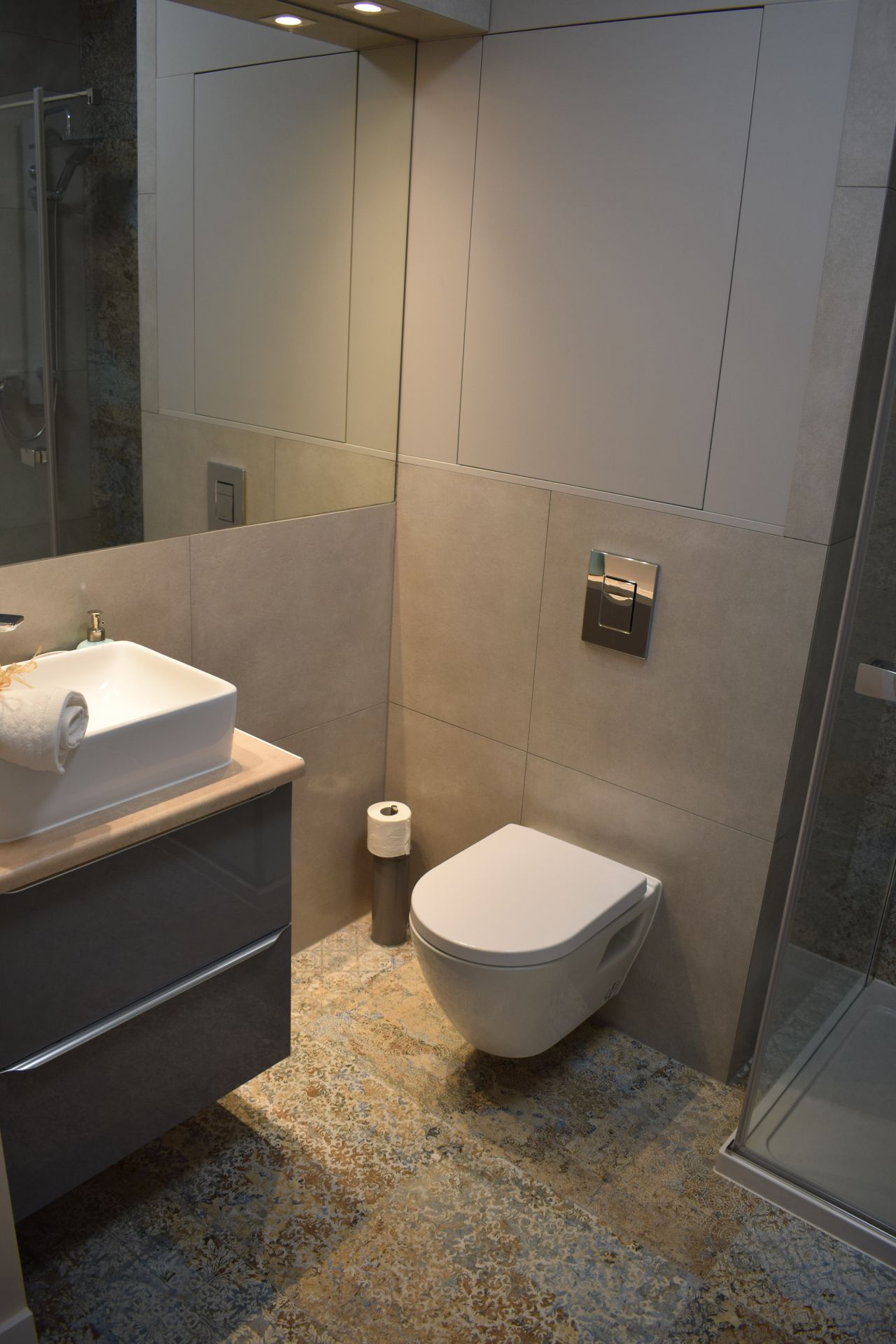 Łazienka : toaleta, prysznic, suszarka do włosów,